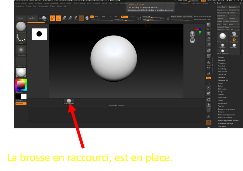 Si quand vous sculpter votre pièce que l’on va essayer d’apprendre à appeler « subtool », vous utiliser régulièrement les mêmes brosses, il sera vite pénible d’ouvrir sans arrêt l’onglet brosse de sélectionner votre brosse, puis de recommencer la même opération pour sélectionner une autre brosse.