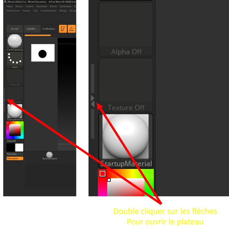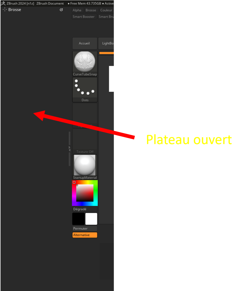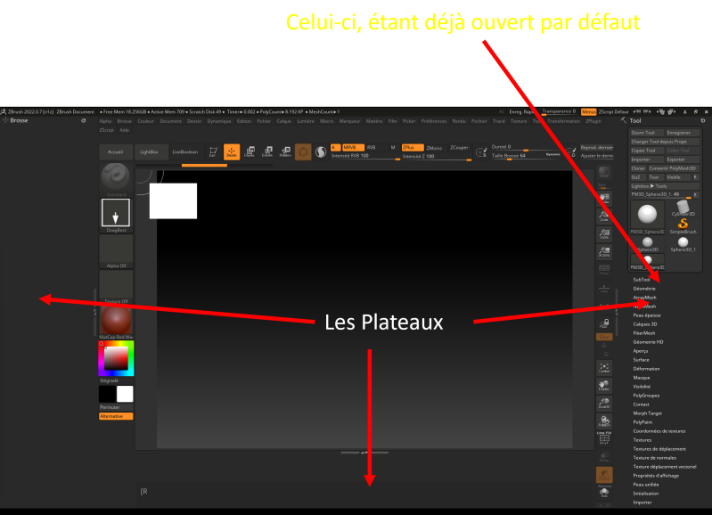 Voici donc l’interface que l’on a lorsque ZBRUSH est ouvert.
