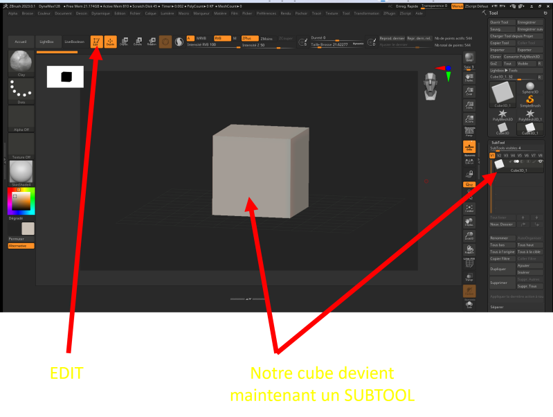 Faite CTL+N pour effacer l’ensemble du canevas puis clic gauche (maintenu) en tirant vers vous pour refaire apparaitre votre cube.